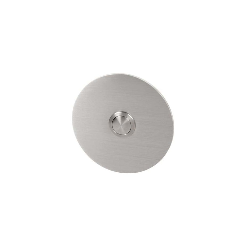 Bouton de sonnette rond en acier inoxydable de 80 mm de diamètre, idéal pour une installation extérieure afin d’indiquer la présence des visiteurs à l’entrée de bâtiments résidentiels, professionnels ou institutionnels.