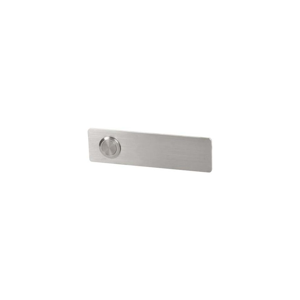 Bouton de sonnette rectangulaire en inox, dimensions 35x125 mm, conçu pour une installation extérieure ou intérieure. Il permet de signaler efficacement une présence à l’entrée d’un bâtiment, idéal pour maison, bureau ou local professionnel.