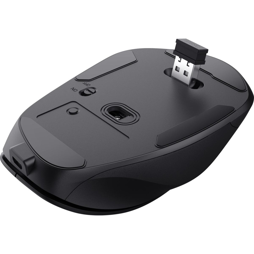 Branchez le microrécepteur USB à votre ordinateur et profitez d’une connexion sans fil fiable. La souris est adaptée à la main droite, avec des boutons latéraux pour simplifier la navigation. Réglez la sensibilité selon vos besoins et rechargez facilement via le port USB-C intégré, sans avoir à remplacer de piles. Le récepteur se range directement dans la souris pour faciliter les déplacements.