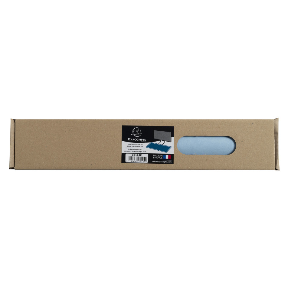 Sous main souple PU bicolore - 35x60cm Le sous-main Exacompta en simili cuir (PU) est souple, et parfaitement adapté pour protéger votre bureau tout en apportant un vrai confort pour l'écriture ou l'utilisation d'équipements informatiques tels que la souris, le clavier... Sa matière est souple, douce, et antidérapante. Surtout, elle résiste aux taches d'encre, à l'eau, aux rayures, et se nettoie très facilement avec un simple chiffon humide. Bicolore, une couleur recto, une couleur verso, le sous-mains s'adapte à votre humeur et à votre décoration. Il apporte une touche tendance à votre bureau professionnel ou votre bureau personnel, home office ou scolaire. Livré roulé, non encombrant, il peut être transporté d'un espace de travail à un autre, du bureau à la maison. Il se déplit facilement et retrouve après quelques instants sa parfaite planéité. 100% Européen, le sous-main est fabriqué en France dans une usine Exacompta. Il suit les normes et règlementations Européennes.
