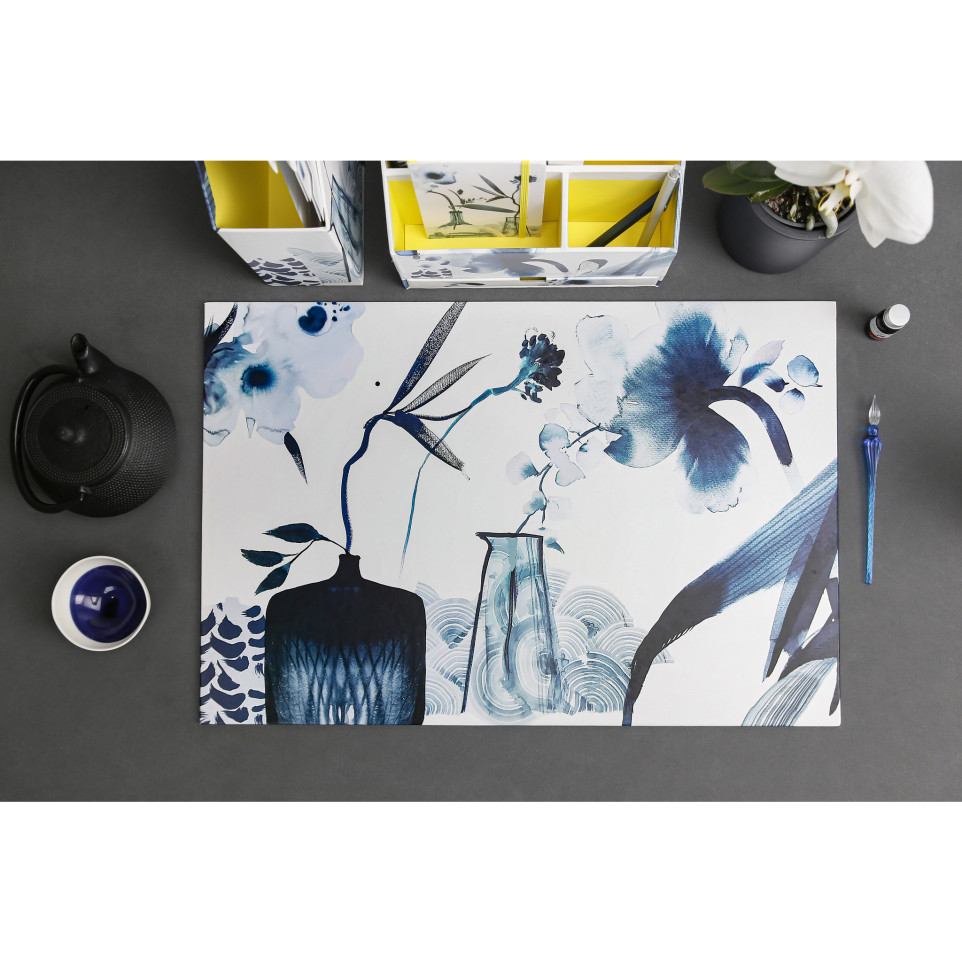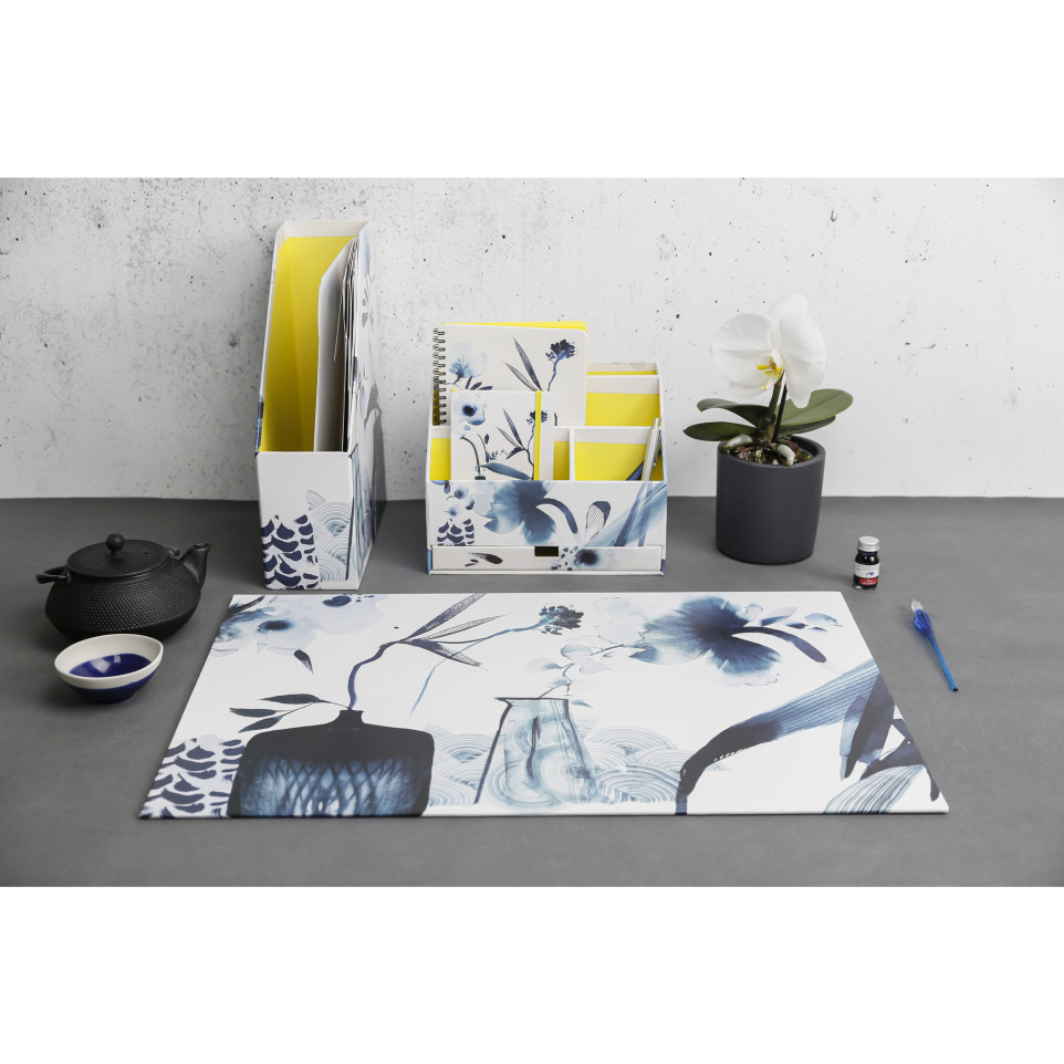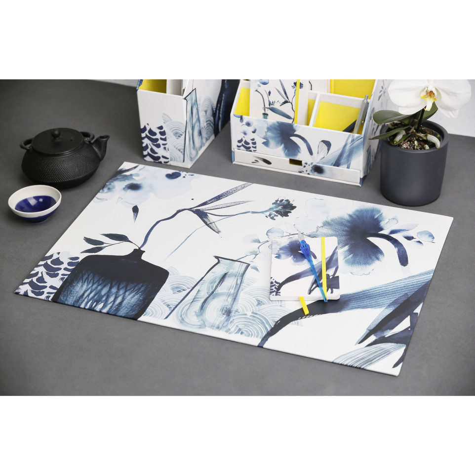 Inkebana, Sous main 60x40cm Véritable ode aux compositions florales, l'artiste Sophie Griotto laisse libre court à sa créativité. Inspirée par l'art asiatique, elle laisse s'exprimer le blanc du papier et la chorégraphie du pinceau sur celui-ci. La fusion de l'encre sur le papier lui permet de composer des fleurs presque en macro et un peu radiographiées. Reconnue pour ses illustrations de mode et pour ses tableaux reflétant des atmosphères parisiennes et de bord de mer, Sophie Griotto aime peindre des fleurs à l'encre, c'est un moment d'évasion, de lâcher-prise qui la ressource. Ink comme encre, Ikebana comme l'art traditionnel japonais fondé sur la composition florale, le nom de Inkebana s'est naturellement imposé pour cette collection. 1 visuel. Fabriqué à base de carton certifié PEFC, pelliculage satiné.