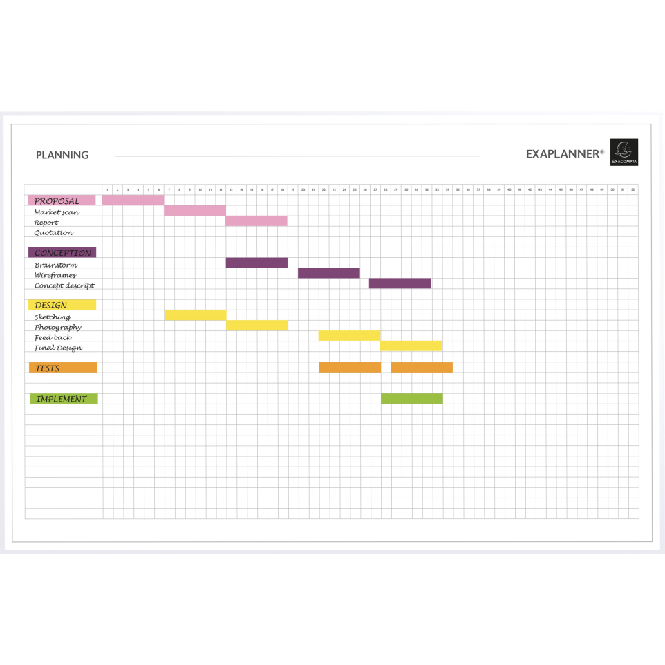 Planning magnétique Projet Ce planning est fabriqué à partir d'un procédé innovant de papier magnétique issu des papeteries Clairefontaine. Ecologique, composé uniquement de carton et papier magnétique, il est effaçable à sec et accueille les magnets réinscriptibles livrés avec. Plus simple, beaucoup moins coûteux qu'un tableau d'affichage métal, il est facile à installer et à utiliser au quotidien, et se duplique dans tous les services. Planning de projet, il permet un suivi dans le temps des projets d'entreprises, d'équipes, ou de tout type d'oganisation y compris a ssociation. Sur 52 semaines, il suffit d'indiquer toutes les étapes et leur programmation dans l'année grâce aux magnets multicolores qui segmentent les taches. Livré avec un marqueur effaçable à sec, 240 bandes magnets couleurs effaçables à sec, 1 boite de rangement pour les magnets. 1 kit de fixation murale.