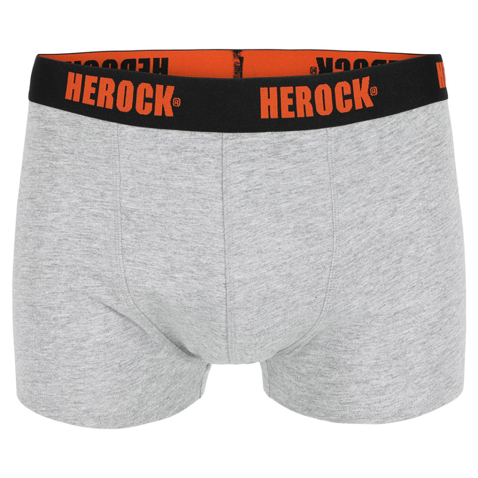 Pack de 3 boxers Herock Gorik pour homme, comprenant un boxer noir, un orange et un gris chiné clair. Idéal au quotidien pour garantir confort et maintien, adapté aux environnements professionnels ou aux loisirs.