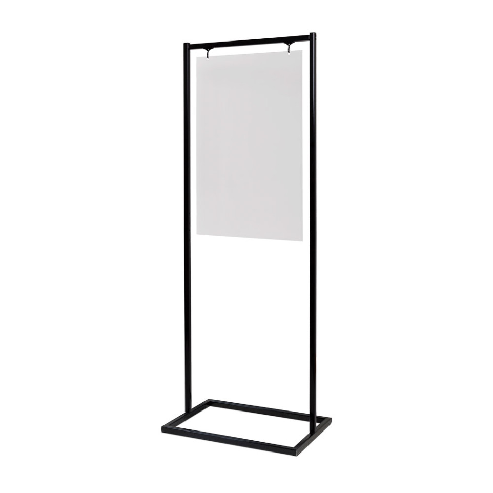 Le présentoir se positionne au sol et accueille une affiche au format A1 dans sa pochette en verre acrylique. Il permet une communication visuelle efficace, que ce soit en vitrine, en espace de vente, en salon ou en zone d'accueil.