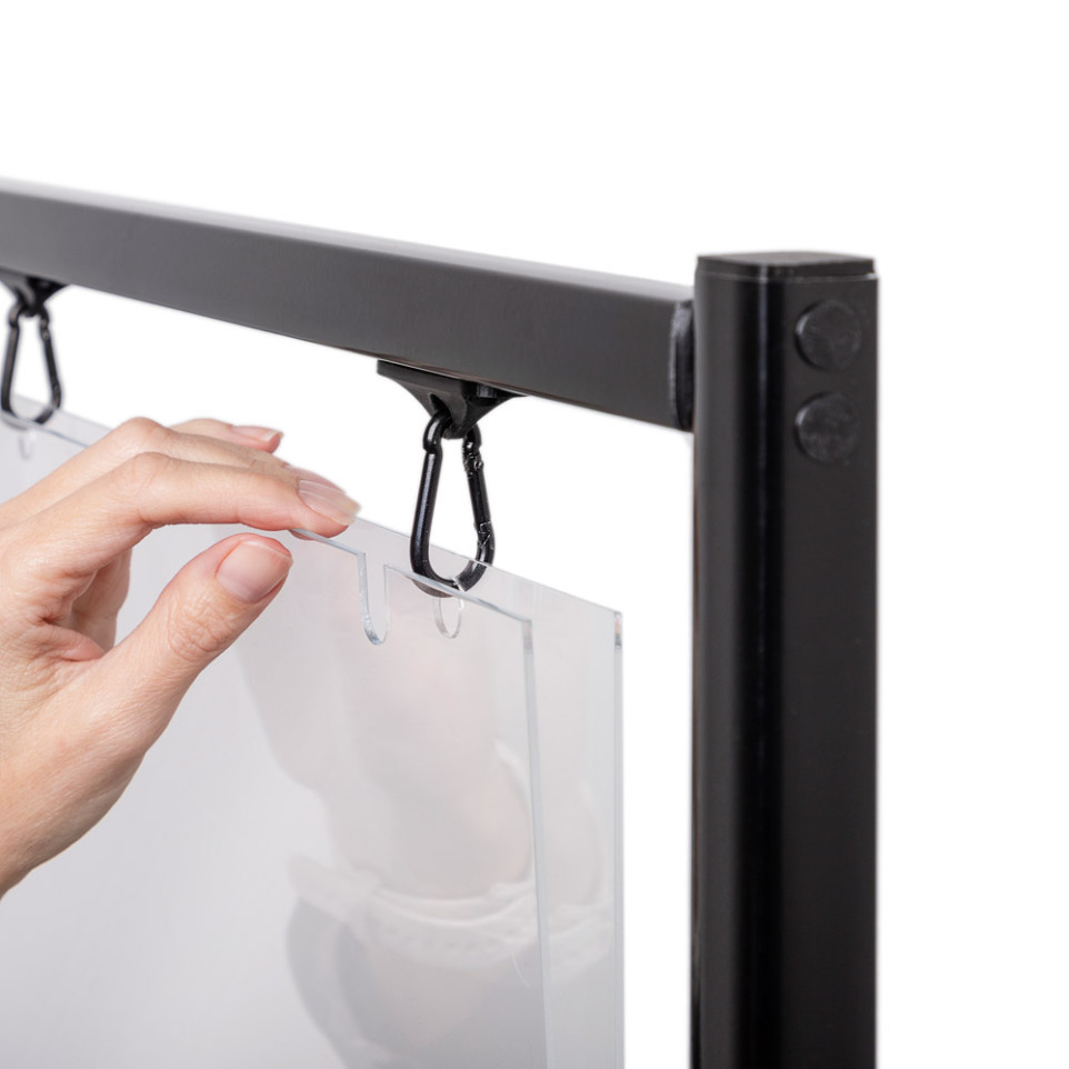 Le Présentoir d'affiche Decor Sway A1 Noir est un support sol en aluminium destiné à exposer des affiches au format A1, idéal pour les espaces commerciaux, salons et zones d'accueil.