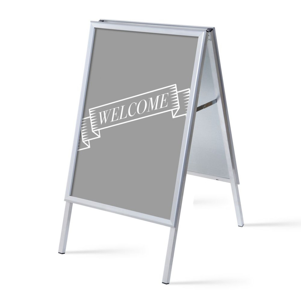 Ce chevalet est simple à installer et à transporter. Il suffit d’ouvrir la structure, d’insérer l’affiche derrière la feuille de protection, puis de refermer les profils pour maintenir l’ensemble. Son format permet un changement rapide et sécurisé des visuels, parfait pour mettre à jour promotions, informations ou signalétiques.