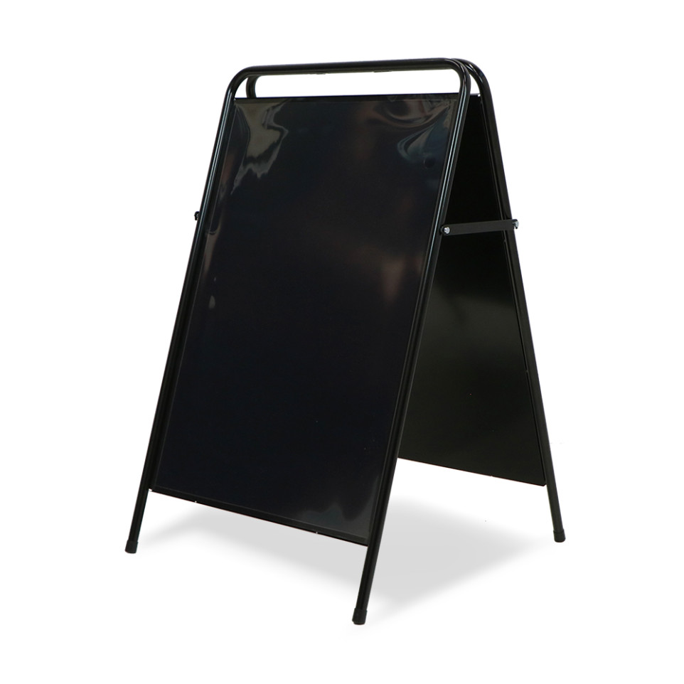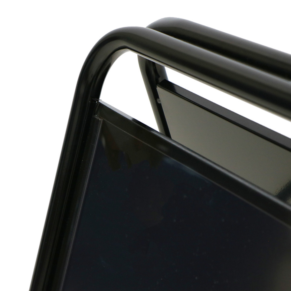 Placez le chevalet en position verticale dans votre espace commercial ou d'accueil. Insérez votre affiche sous le film de protection maintenu par la bande magnétique. Le changement de visuel s'effectue rapidement sans outils, facilitant la mise à jour régulière de vos communications.