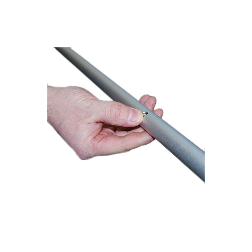 Quels éléments sont inclus dans l’ensemble ? L'ensemble comprend un enrouleur, un montant vertical télescopique, une barre supérieure avec système de serrage, et une housse de transport doublée.