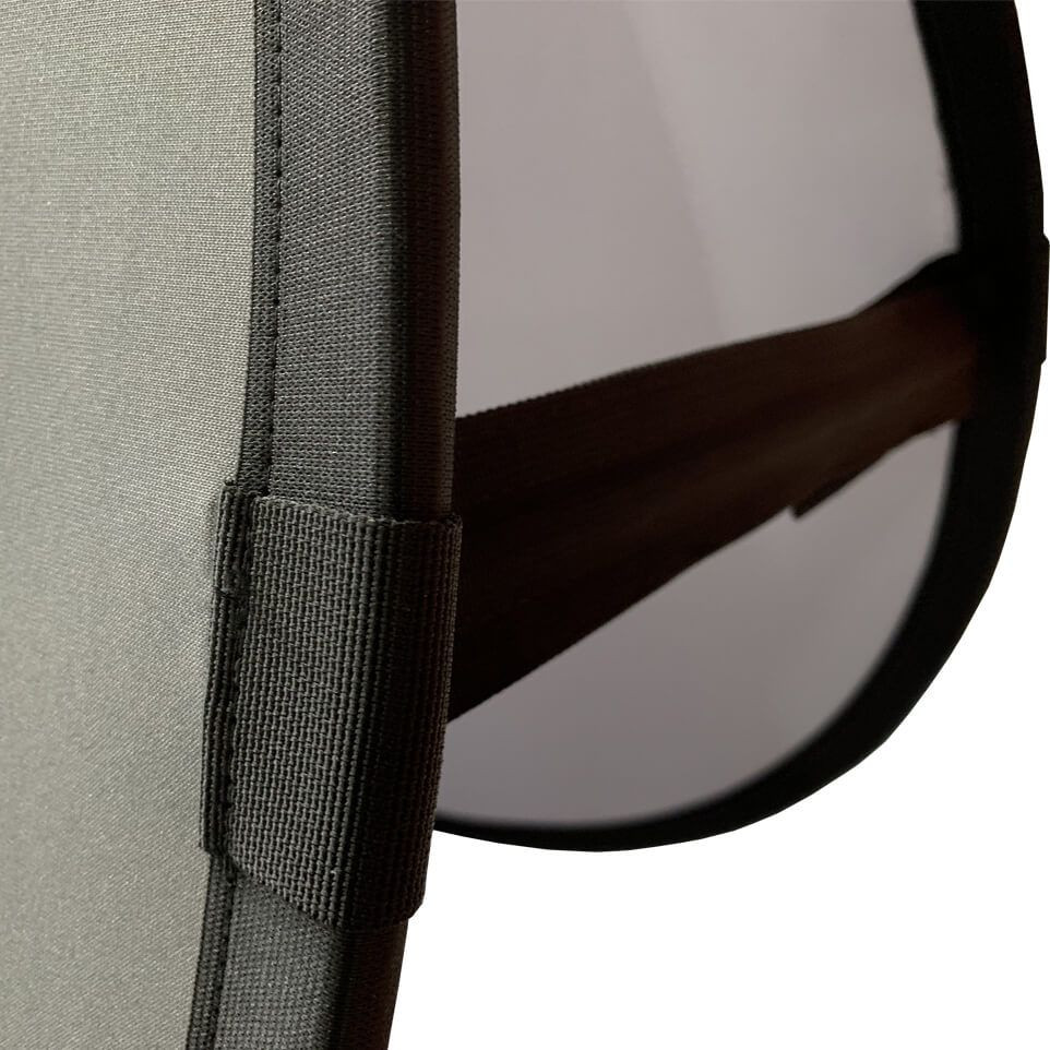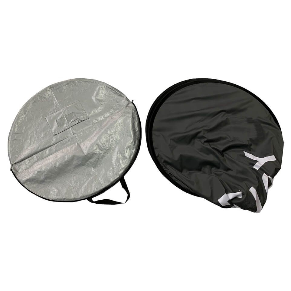 A5. Transport compact et sécurisé : Le rangement dans une housse circulaire dédiée, combiné à un poids maîtrisé (4,7 kg à 6,7 kg selon la taille) et à une finition renforcée par sangle latérale noire, facilite le transport, protège le visuel et prolonge la durée d’usage du support.