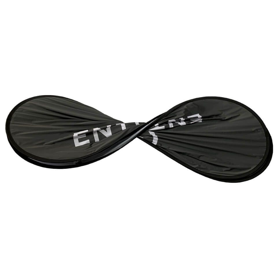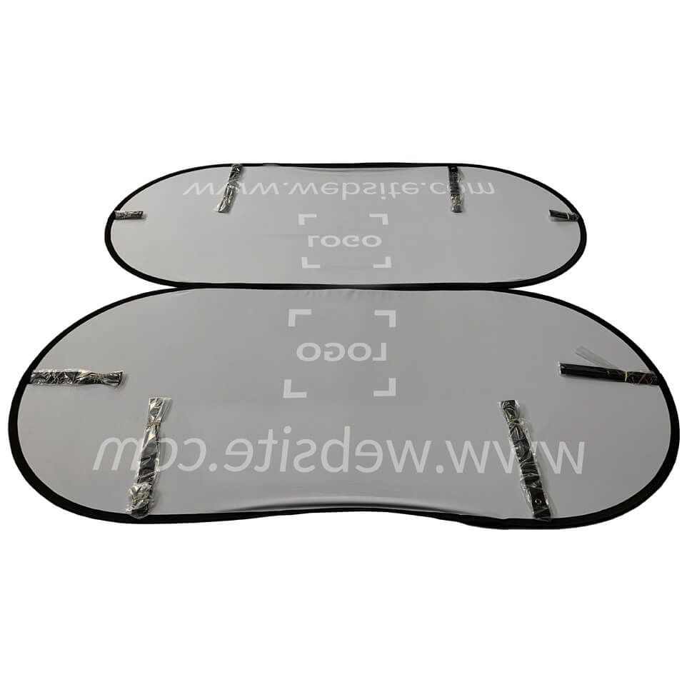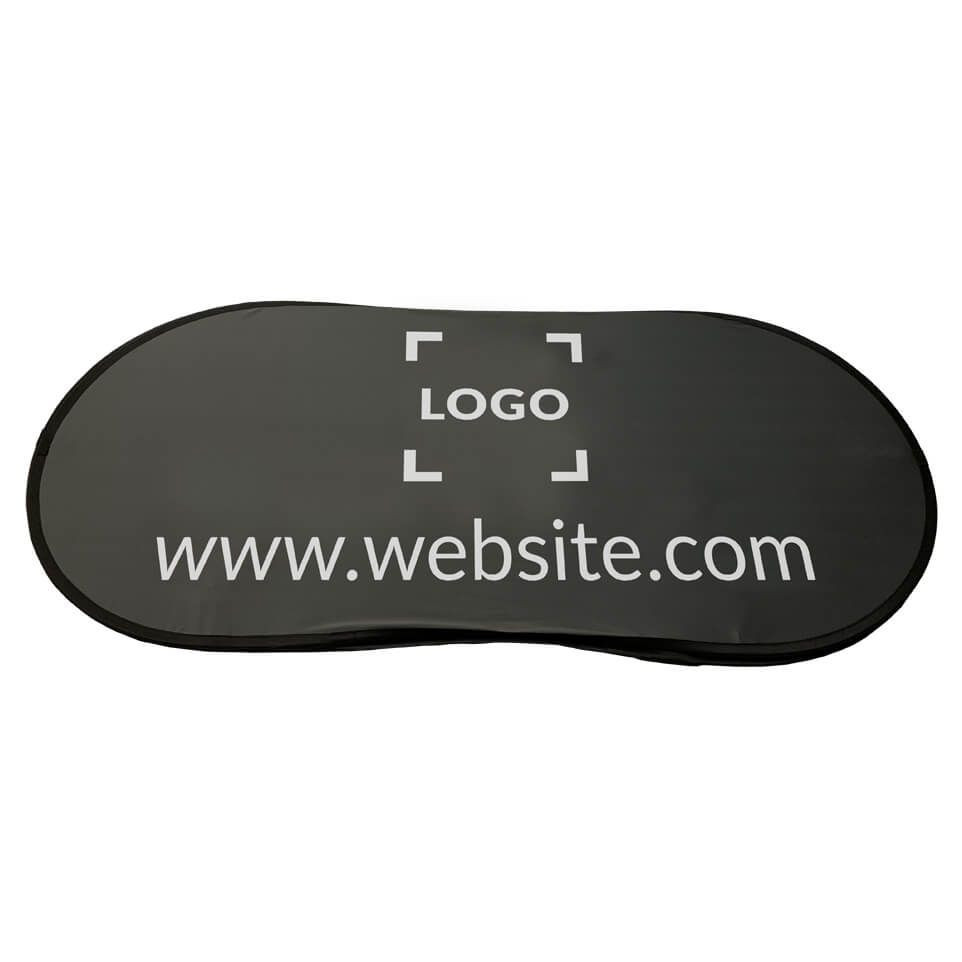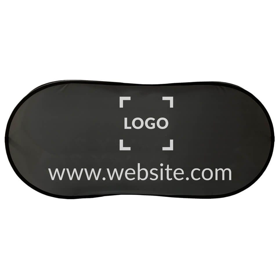 Le support est en polyester 210gr/m² avec une sangle de renfort latérale noire et une impression digitale full quadri par sublimation.