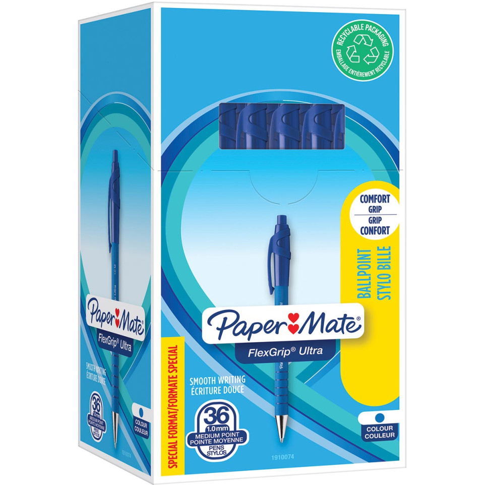 Le Paper Mate stylo bille Flexgrip Ultra RT bleu offre une écriture souple et confortable grâce à sa pointe moyenne de 1 mm et sa technologie d’encre lubriglide. Idéal pour les usages quotidiens au bureau, à l’école ou à la maison, ce lot contient 36 stylos (30 + 6 gratuits) pour toujours avoir un stylo fiable sous la main.