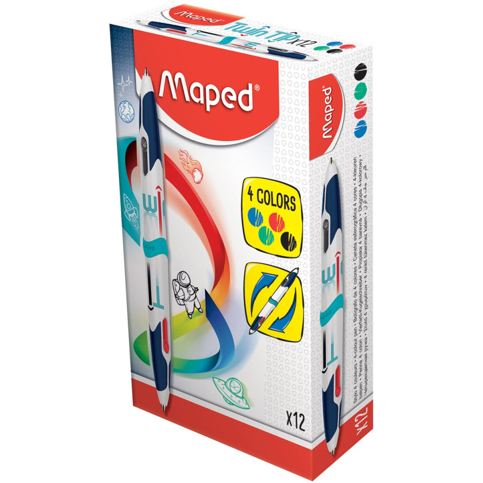 Le Maped Twin Tip est un stylo bille à double pointe permettant d’utiliser simultanément 4 couleurs classiques (bleu, rouge, vert, noir). Idéal pour l’écriture quotidienne, l’organisation, la prise de notes ou la correction.