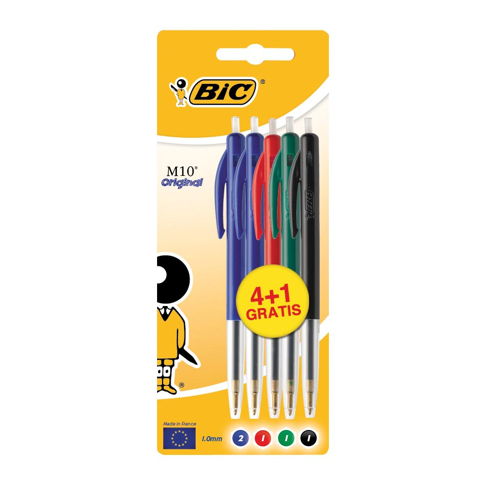 Le Bic stylo bille M10, conditionné en blister de 5 pièces (4 + 1 gratuite) aux couleurs assorties, est conçu pour l’écriture quotidienne au bureau, en classe ou à la maison. Ce stylo rétractable à bouton-poussoir latéral combine praticité et fiabilité.