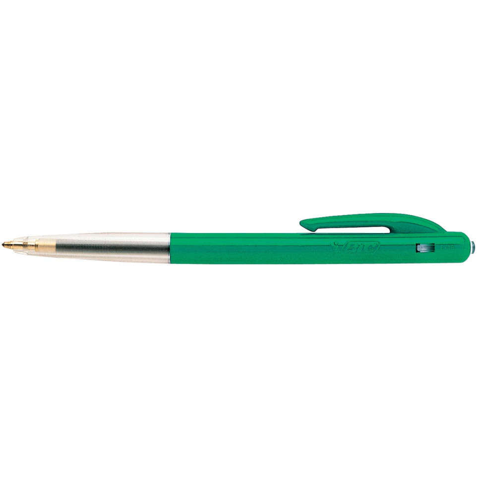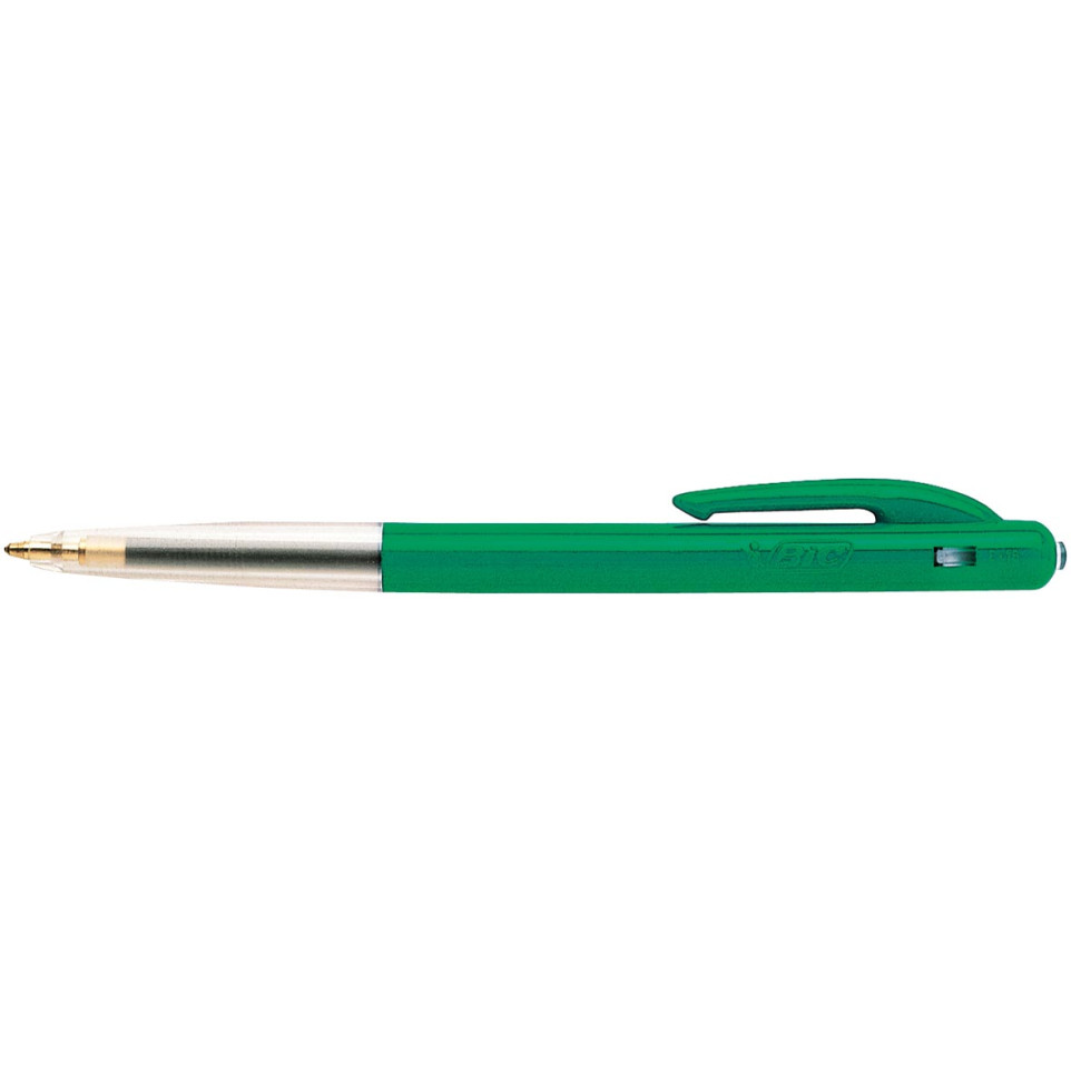 Stylo bille rétractable Bic M10 Clic, pointe moyenne de 0,4 mm, encre de couleur verte, adapté à un usage quotidien en bureau, école ou à la maison. Corps et clip assortis à la couleur de l’encre pour une identification rapide.