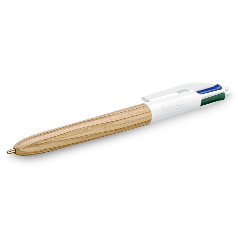 Stylo bille Bic 4 Couleurs Wood, rétractable et rechargeable, doté de 4 encres classiques (bleu, rouge, vert, noir) avec pointe moyenne de 1 mm, idéal pour l’organisation, la prise de notes et les usages quotidiens.