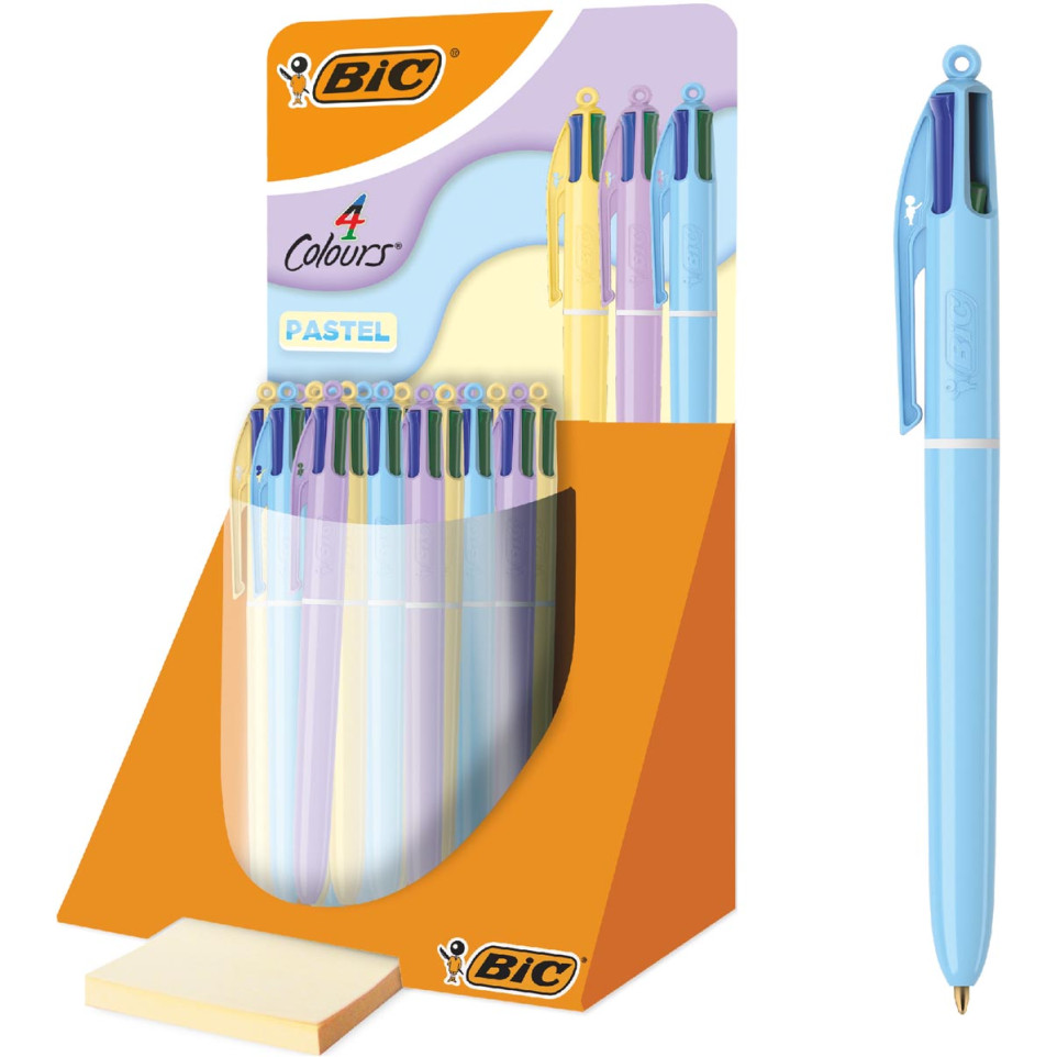Stylo-bille BIC 4 Couleurs Pastel doté de quatre encres classiques (bleu, noir, rouge, vert) et d’une pointe moyenne de 0,4 mm, présentés dans trois corps pastel (bleu, jaune, violet). Présentoir pratique de 30 pièces, idéal pour les bureaux ou points de vente.