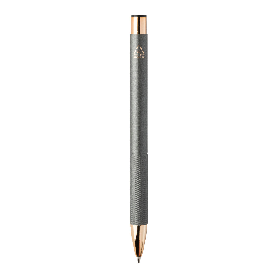 Le stylo Rozoros gris clair constitue un support de communication efficace pour valoriser votre marque grâce à sa surface personnalisable par gravure miroir or rose. C’est un choix judicieux pour renforcer la visibilité lors de salons, lancements de produits, cadeaux d’entreprise, actions promotionnelles, accueil de nouveaux collaborateurs ou campagnes d’employee branding. Sa finition moderne et ses matériaux recyclés contribuent à véhiculer une image professionnelle et soucieuse du développement durable.