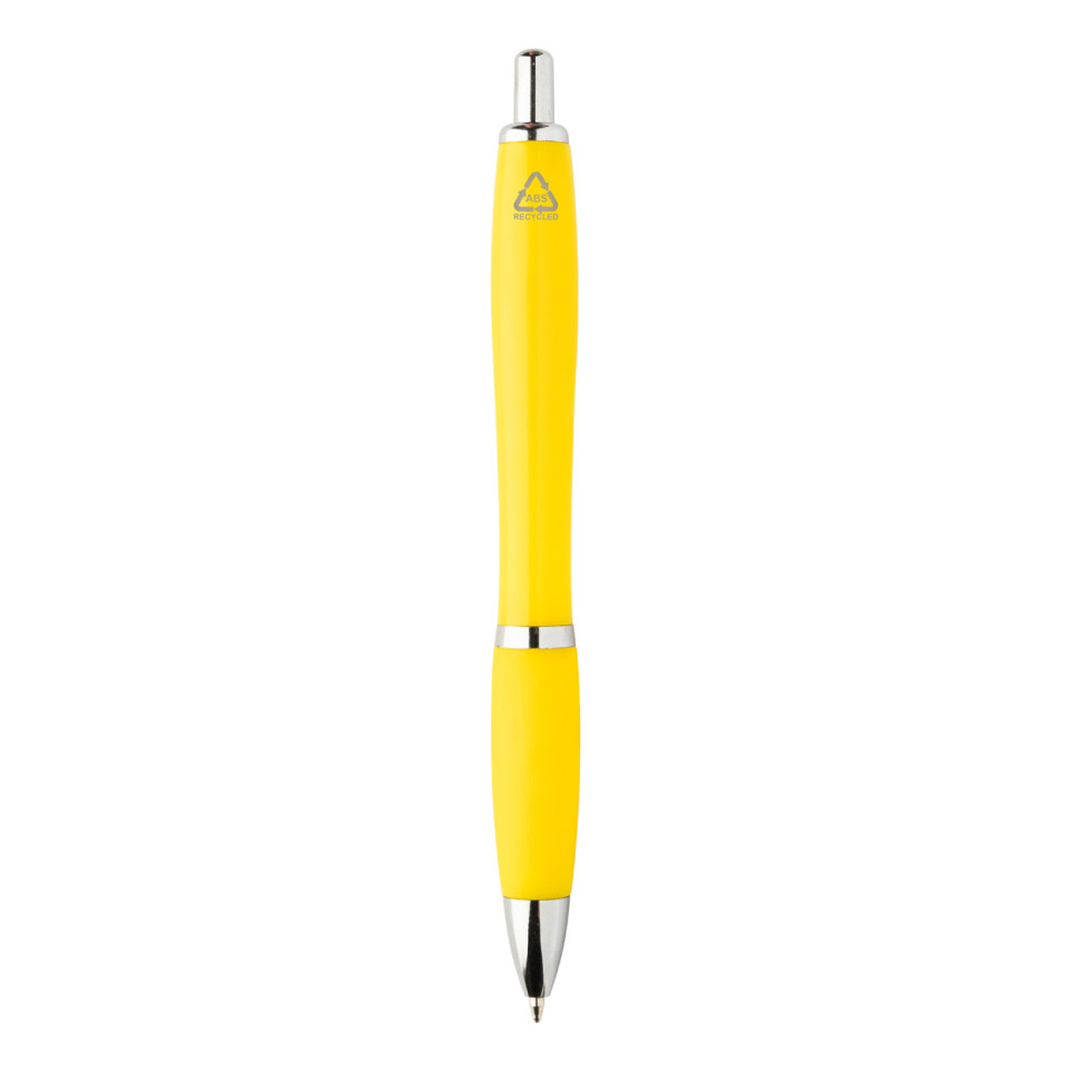Le stylo bille Recompy jaune est un instrument d'écriture conçu en ABS recyclé, idéal pour un usage quotidien au bureau, en réunion ou lors de salons professionnels. Il offre une prise en main confortable grâce à son grip de couleur assortie et permet une écriture fluide avec son encre bleue.