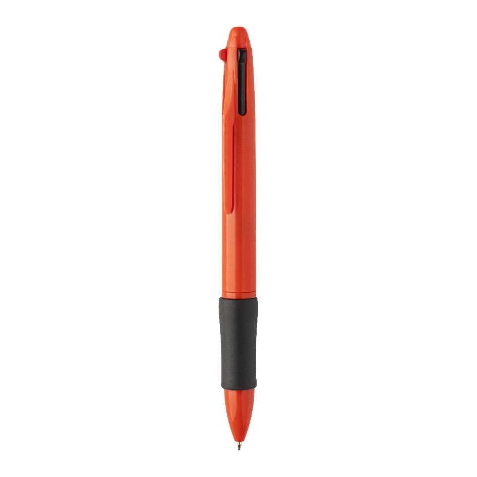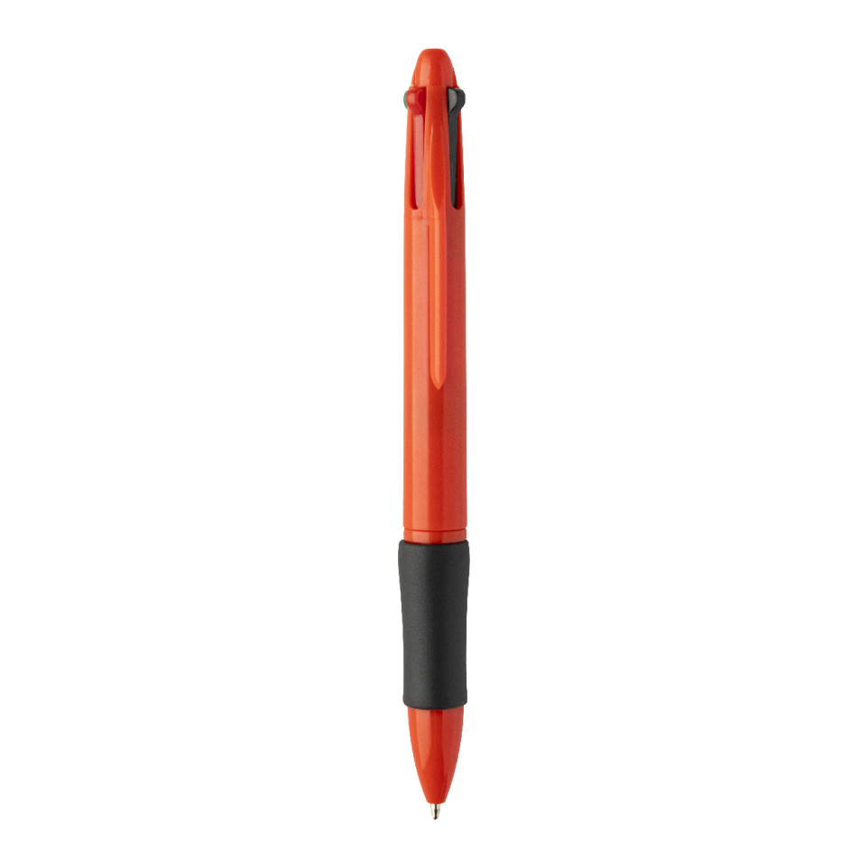 Stylo bille Quattro rouge, doté de 4 couleurs d’encre (noire, bleue, rouge, verte), fabriqué en plastique ABS recyclé avec grip en caoutchouc pour une prise en main confortable. Idéal pour la prise de notes colorée et l’organisation au bureau ou à l’école.