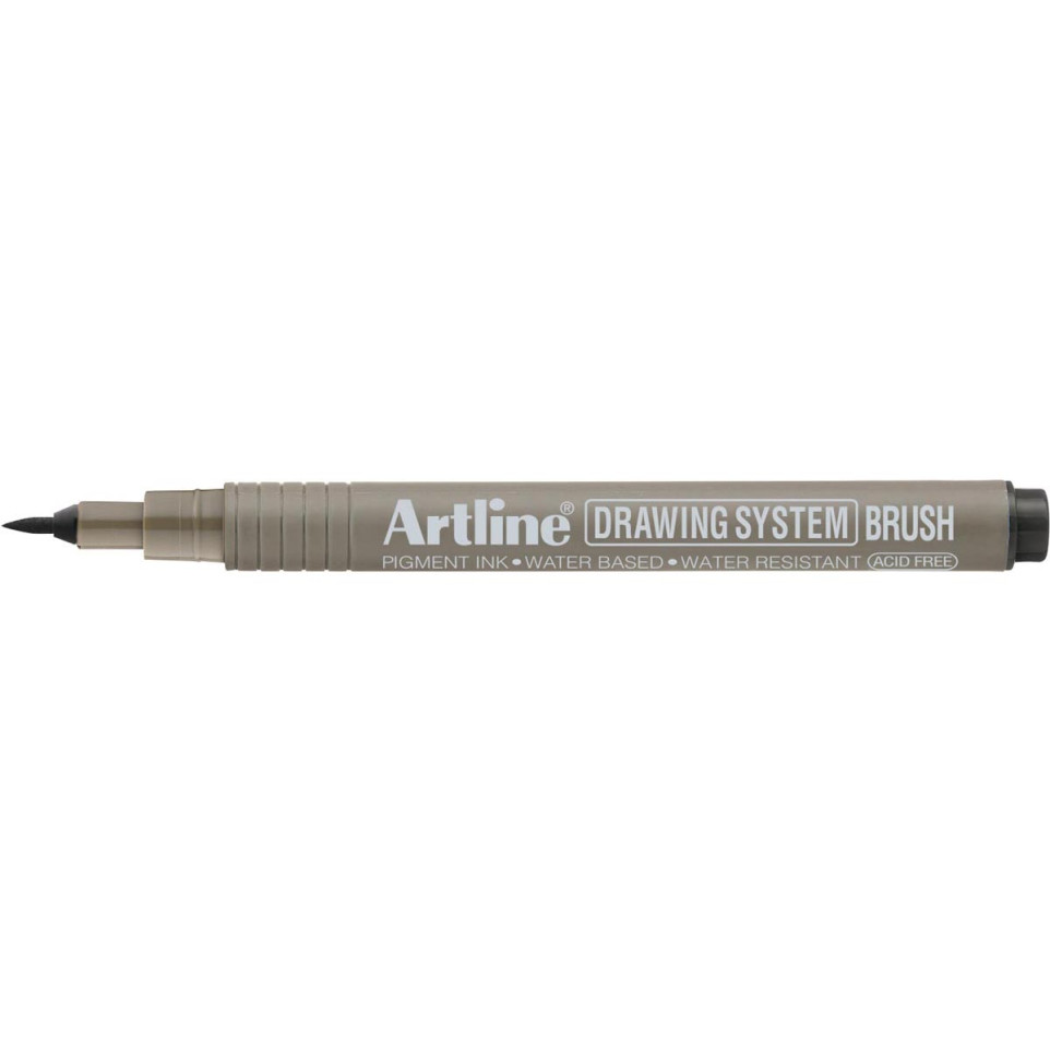 Le Fineliner Drawing System brush pen d’Artline est un feutre pinceau à pointe nylon sertie de métal, conçu pour le dessin technique, l’esquisse et l’illustration scolaire ou artistique. Il offre une encre pigmentée noire à base d’eau, idéale pour des tracés nets et précis.
