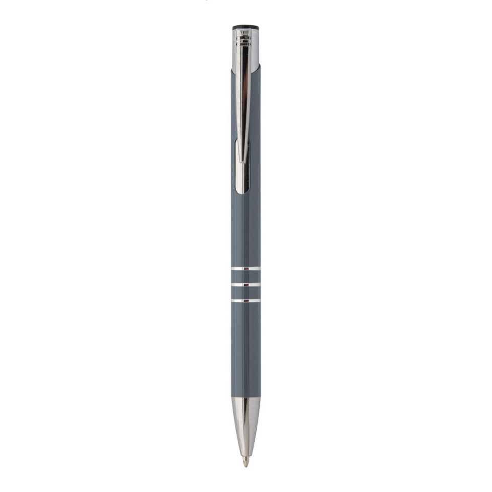 Le Rechannel est un stylo élégant en aluminium recyclé avec encre bleue. Son design épuré et sa couleur gris foncé en font un accessoire d'écriture écologique et professionnel pour un usage quotidien au bureau ou en déplacement.