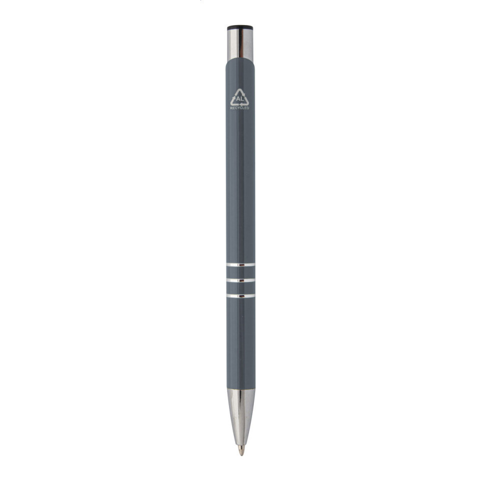 Ce stylo Rechannel en aluminium recyclé constitue un excellent support publicitaire pour les entreprises soucieuses de leur image environnementale. Sa finition gris foncé élégante offre un contraste idéal pour faire ressortir votre logo ou message. Vos clients et partenaires apprécieront ce cadeau d'entreprise alliant fonctionnalité et responsabilité écologique.