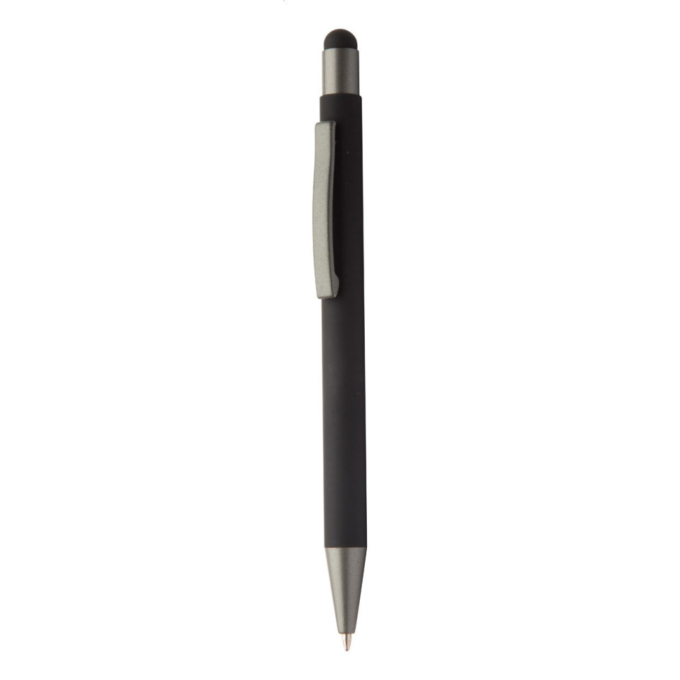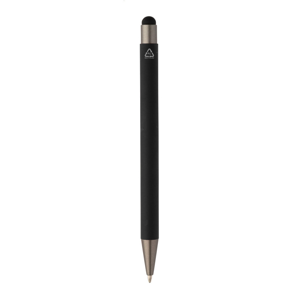 Le Revea noir est un stylo bille avec stylet intégré, fabriqué en aluminium recyclé. Ce modèle bifonctionnel allie élégance et praticité avec son corps caoutchouté et ses accessoires en finition bronze, idéal pour une utilisation quotidienne professionnelle.