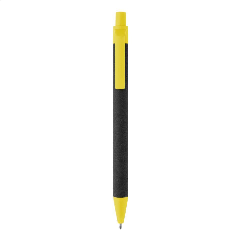 Quels matériaux sont utilisés dans la fabrication de ce stylo ? — Le corps est fabriqué en papier recyclé et les attributs sont en ABS recyclé, ce qui en fait un produit éco-responsable.