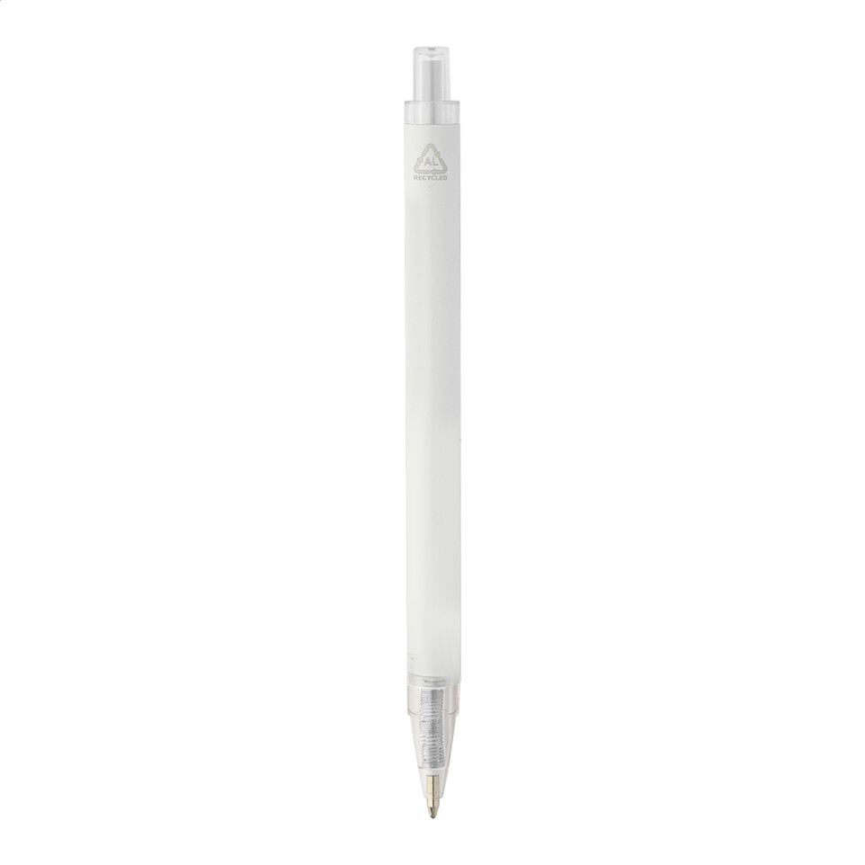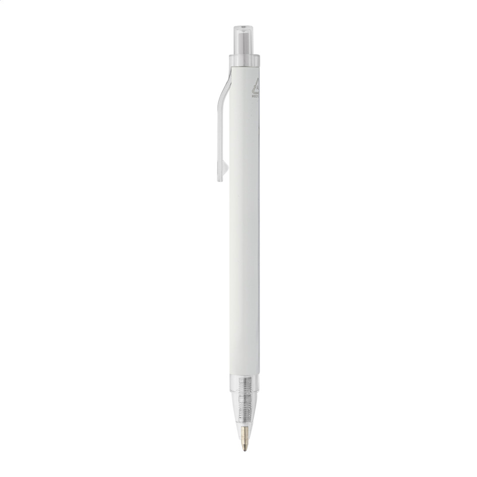 Stylo à bille blanc en aluminium recyclé combinant durabilité et design moderne. Idéal pour les professionnels cherchant des solutions éco-responsables sans compromis sur la qualité.