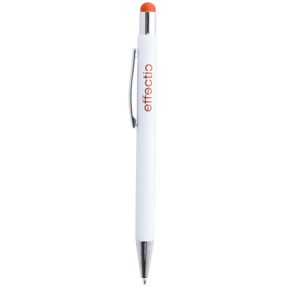 Le Wirly est un stylo à bille élégant avec fonction stylet, combinant aluminium orange et blanc. Son design bicolore moderne et sa polyvalence en font un outil d'écriture pratique pour une utilisation quotidienne professionnelle.