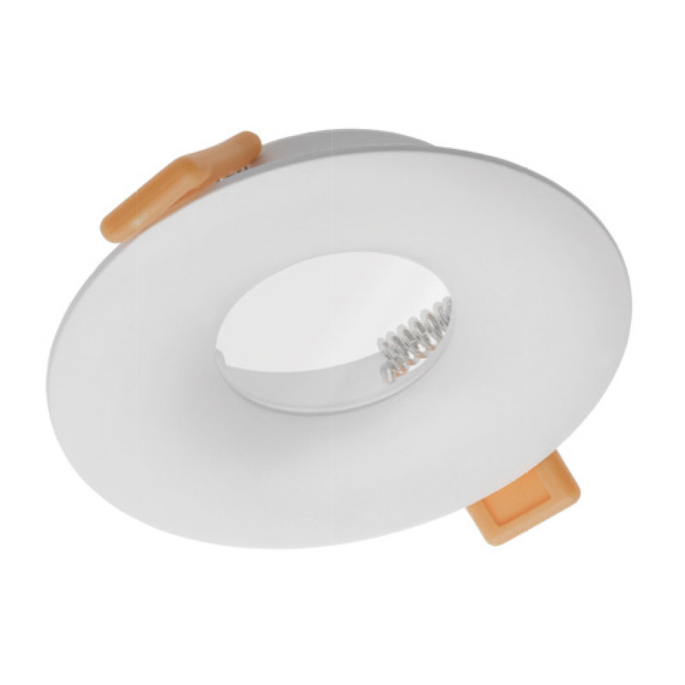 Support Alessio rond blanc mat conçu pour spots LED de 50 mm, à encastrer, idéal pour l’éclairage des salles de bain et zones humides grâce à sa protection IP54. Structure en aluminium de haute qualité adaptée à un usage domestique ou professionnel.