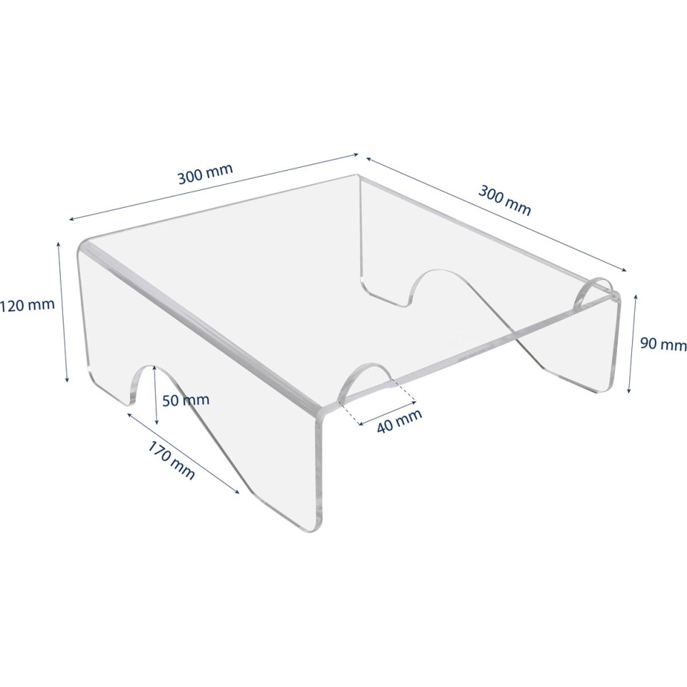 Support pour ordinateur portable en acrylique transparent, conçu pour accueillir des appareils jusqu'à 17 pouces. Parfait pour le bureau ou le télétravail, il offre une meilleure posture et un espace de travail organisé.