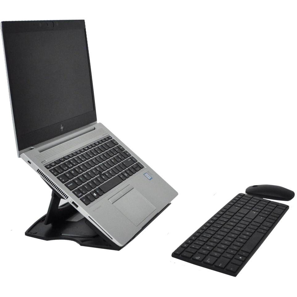 Dépliez le support, sélectionnez l’angle d’inclinaison le mieux adapté à votre activité (écriture, lecture, visioconférence) et placez votre ordinateur ou tablette dessus. Convient aussi bien pour un usage nomade que sédentaire. Se range facilement dans un sac grâce à son faible encombrement.