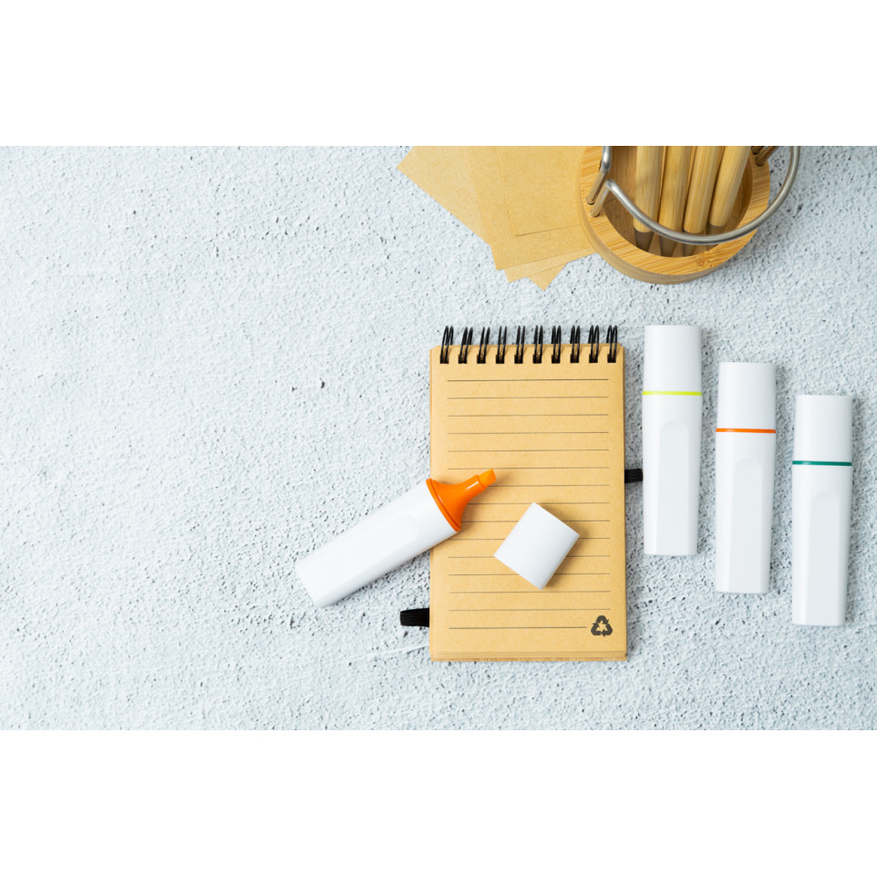 Ce surligneur Rabomark constitue un excellent support de communication pour votre marque. Sa conception écologique en matériaux recyclés véhicule des valeurs de responsabilité environnementale tout en assurant une visibilité quotidienne de votre logo.