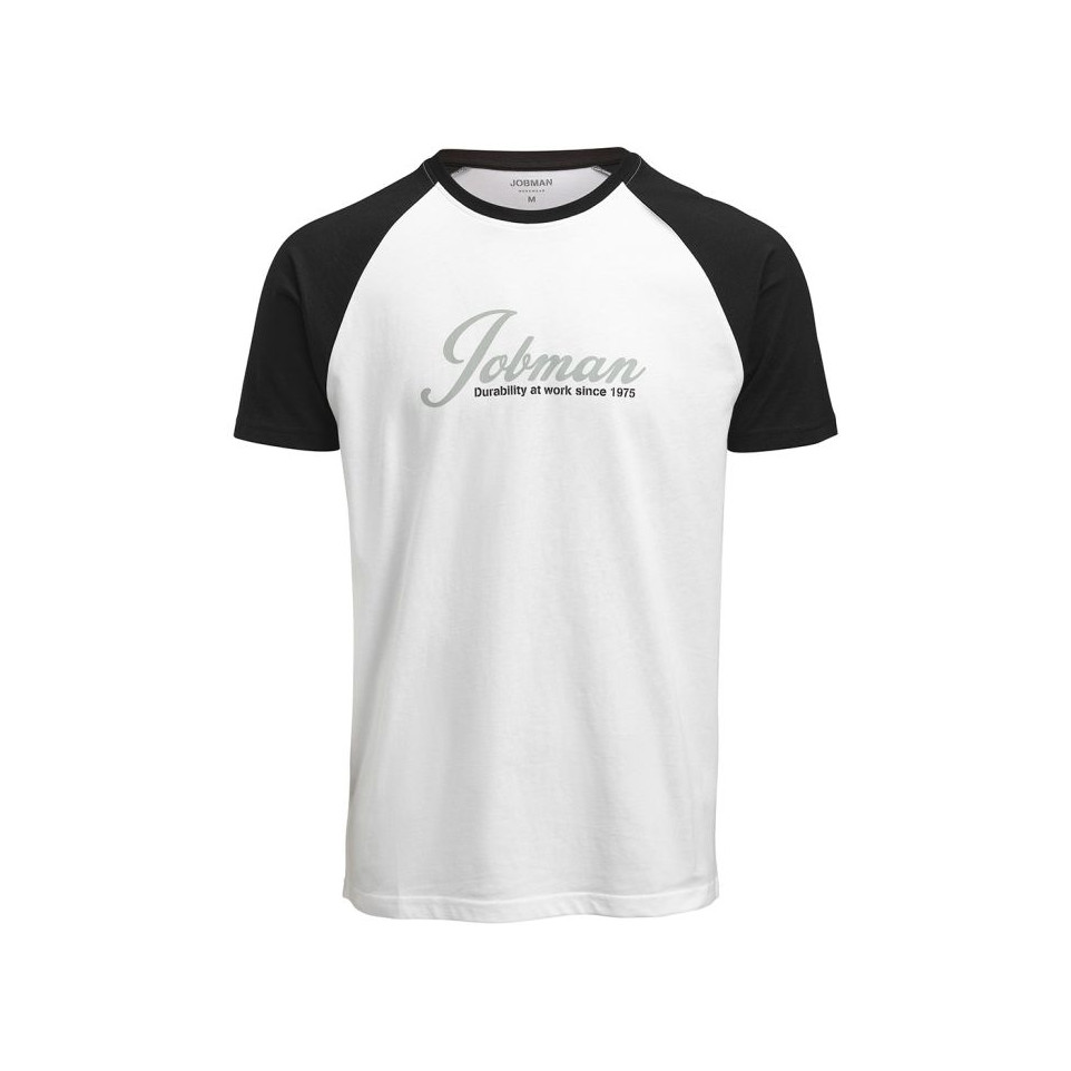 Le T-shirt bicolore Jobman 5269, en blanc et noir, est conçu pour un usage quotidien, adapté à la fois au style décontracté et professionnel.