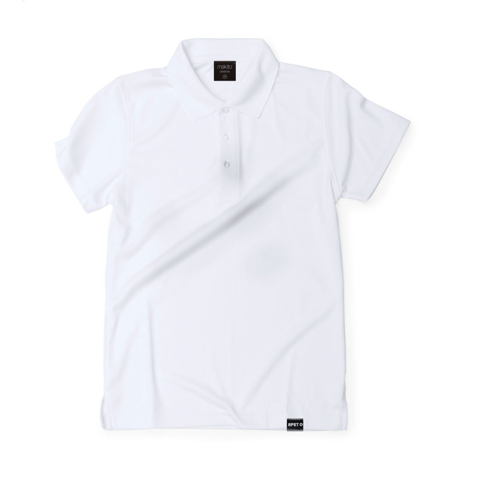 Polo Noran blanc en polyester RPET, coupe XXL, léger et respirant, idéal pour le quotidien, la tenue de travail ou les événements. Trois boutons assortis apportent une finition élégante et pratique.