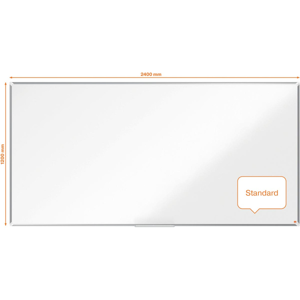 Tableau blanc magnétique émaillé Nobo Premium Plus de 240 x 120 cm, idéal pour les espaces professionnels ou éducatifs nécessitant une grande surface d’écriture et d’affichage. Pratique pour organiser réunions, leçons ou planification collaborative.