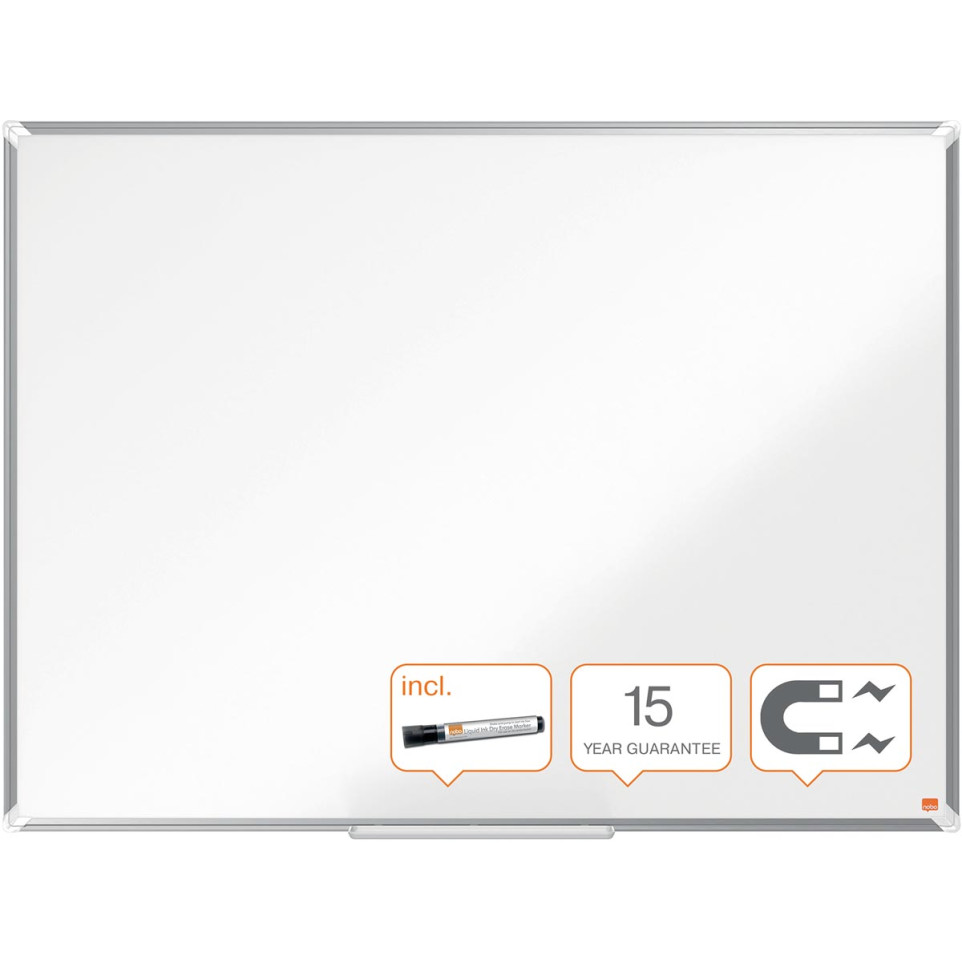Tableau blanc Nobo Premium Plus 90 x 120 cm, conçu pour un usage professionnel ou éducatif. Surface magnétique en acier laqué adaptée à l’écriture fréquente, idéale pour les réunions, les salles de classe ou le bureau.