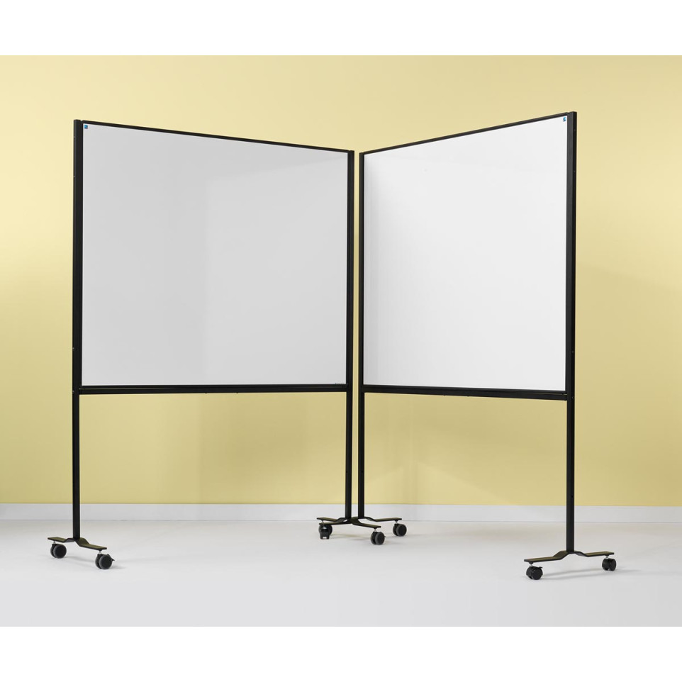 Tableau blanc mobile Smit Visual en acier émaillé, double face, magnétique, effaçable à sec, conçu pour un usage flexible dans les salles de réunion, espaces collaboratifs ou formations. Dimensions : 150 x 120 cm, montage et déplacement facilités.