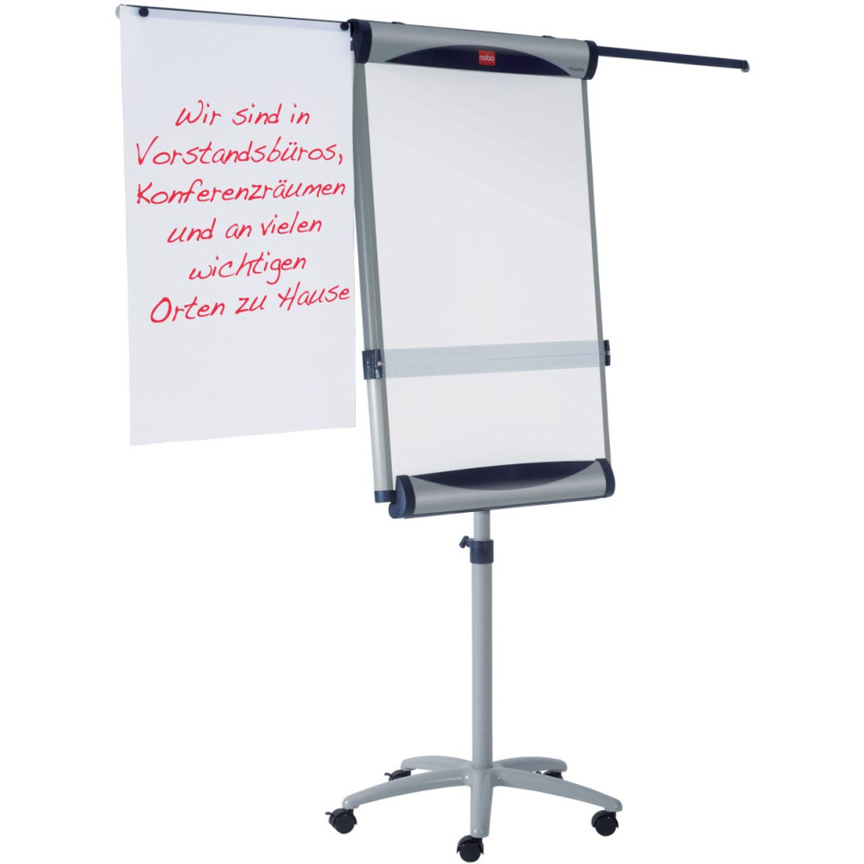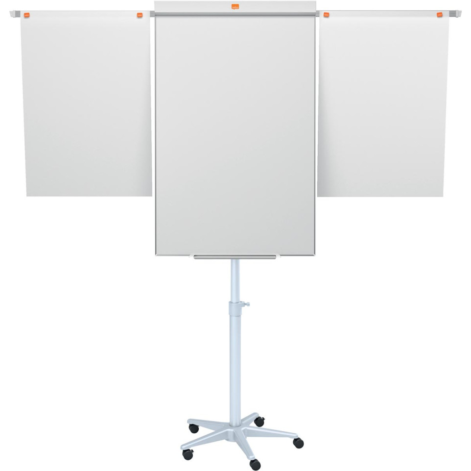 Tableau de conférence mobile Nobo Impression Pro en acier, équipé de bras extensibles magnétiques et d’une surface magnétique effaçable à sec, idéal pour des réunions dynamiques ou des présentations collaboratives, en entreprise ou en environnement éducatif.