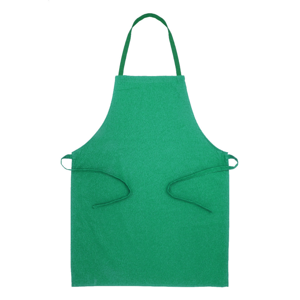 Tablier de cuisine Commis vert, fabriqué en coton recyclé à 100 %, conçu pour offrir confort et protection lors de la préparation de repas à la maison ou en milieu professionnel.
