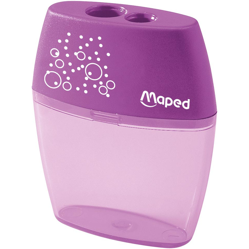 Taille-crayon en plastique doté de deux trous, fourni dans une boîte pratique. Niveau de remplissage facilement visible. Disponible en plusieurs coloris assortis : pourpre, vert et bleu. Conçu pour une utilisation scolaire, professionnelle ou créative.