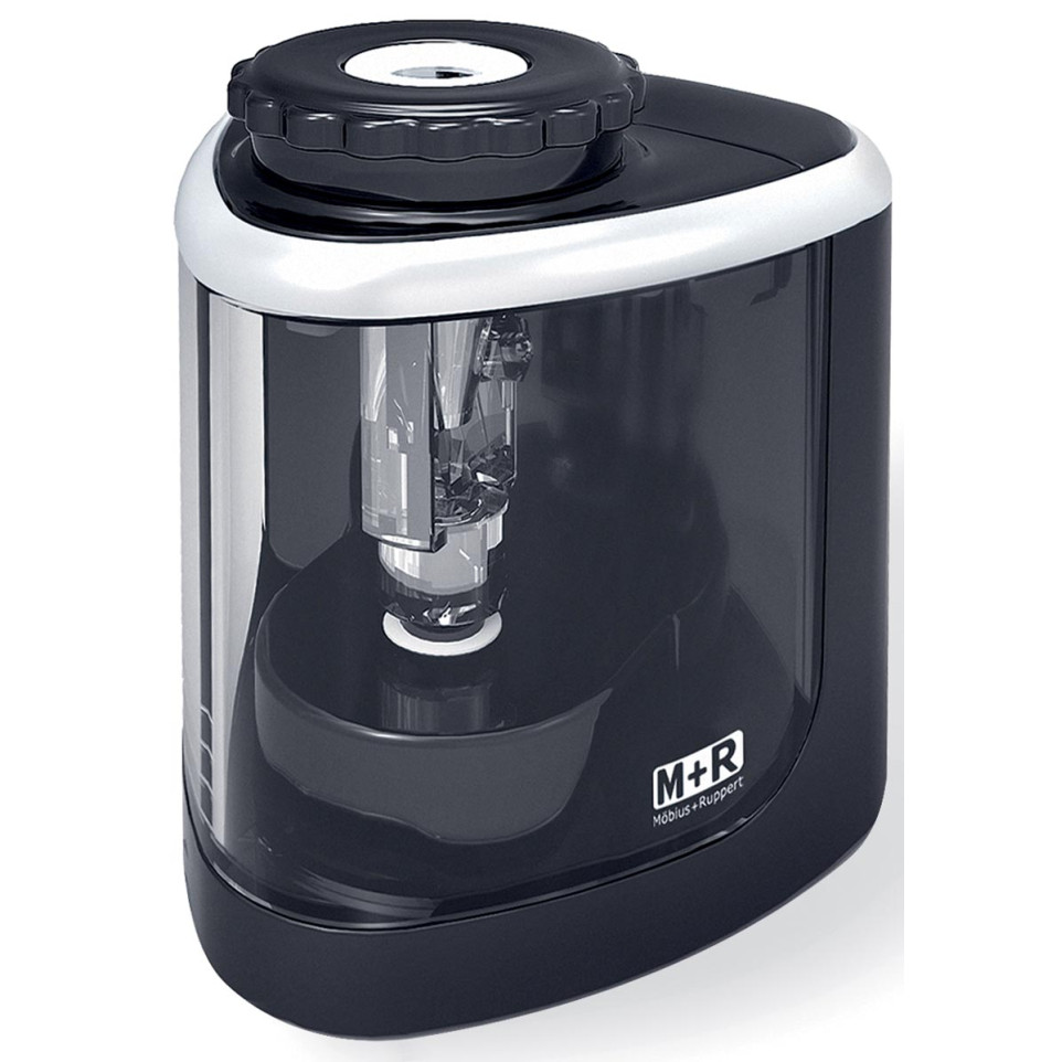 Taille-crayon électrique M+R noir, compact et pratique, idéal pour un usage quotidien au bureau, à l’école ou à la maison. Compatible avec les crayons standards, il offre une taille précise en quelques secondes.