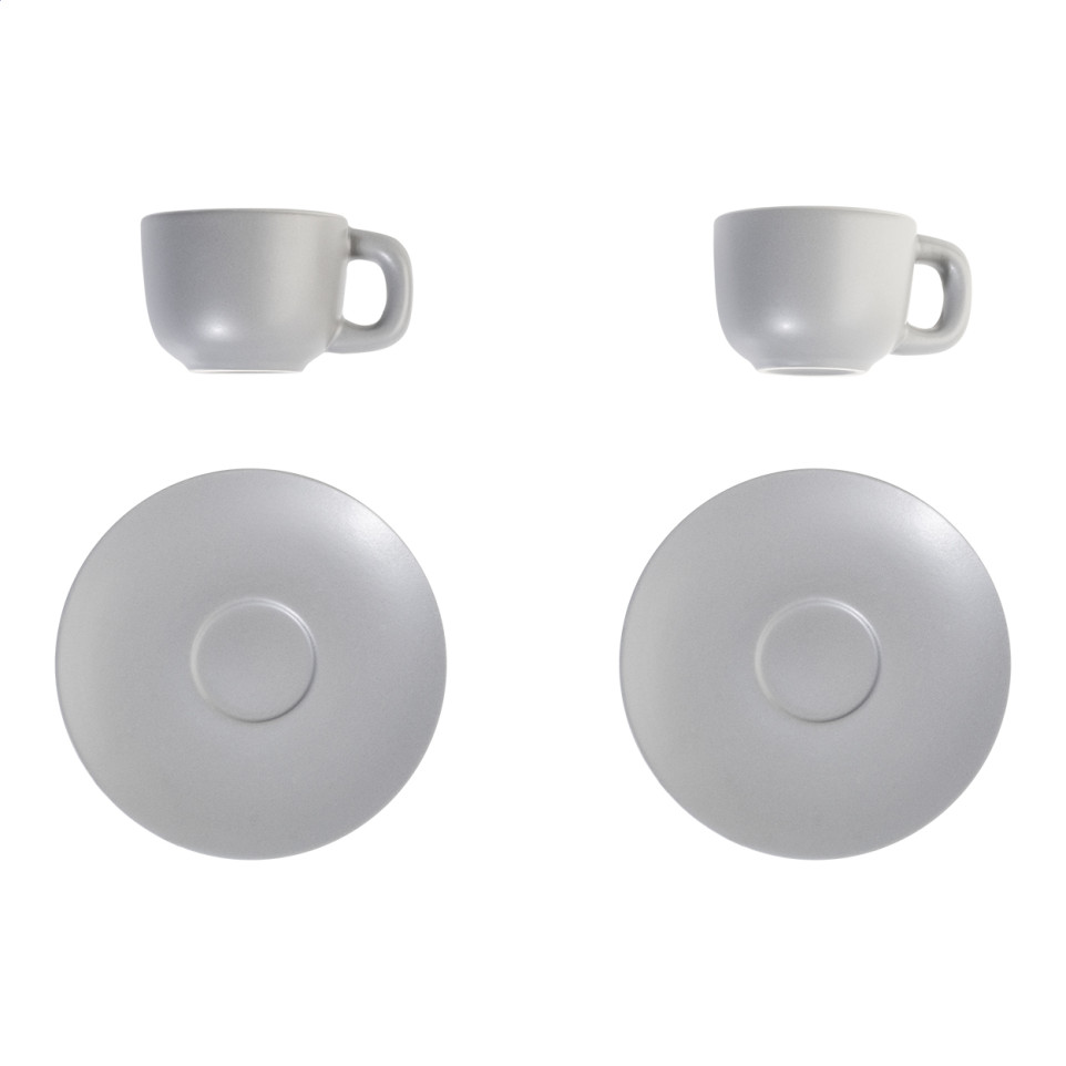 Set de deux tasses espresso en céramique avec soucoupes, idéal pour savourer un café en toute élégance, à la maison comme en entreprise.