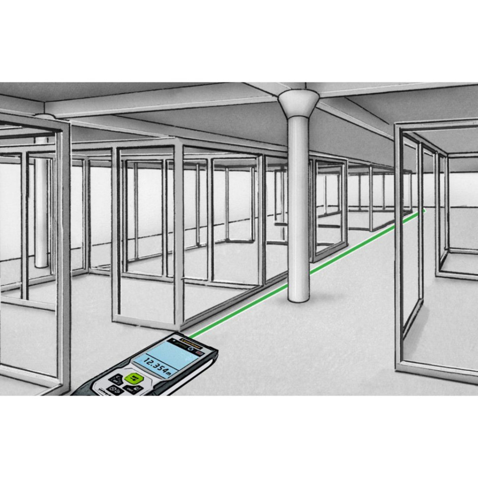 Le LaserRange-Master GI5 s’utilise en pointant le faisceau sur la cible et en sélectionnant le mode de mesure souhaité (longueur, surface, volume, hauteur indirecte). Il affiche les résultats instantanément sur l’écran. La fonction de mémoire permet de garder en stock les mesures pour une documentation ultérieure. L’ajustement du plan de référence (avant/arrière), la bulle numérique et la fonction d’angle facilitent les mesures complexes et dans les espaces difficiles d’accès.