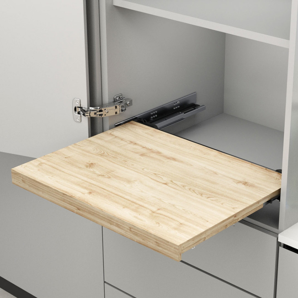 Ce kit permet de fixer solidement une tablette ou un tiroir sur les coulisses Magic-Move pour garantir leur stabilité.