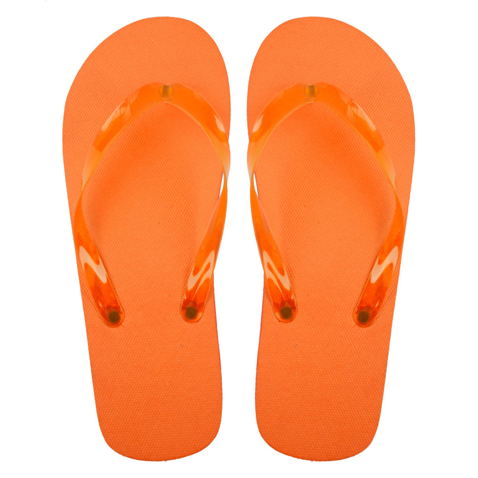 Tongs Boracay orange de taille 42-44, conçues pour le confort quotidien avec des bandes en PVC transparentes de couleur assortie. Idéales pour la plage, la piscine ou les activités estivales.