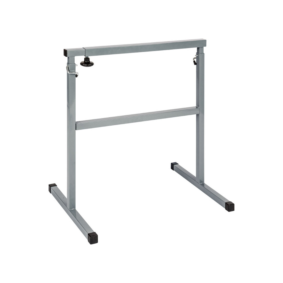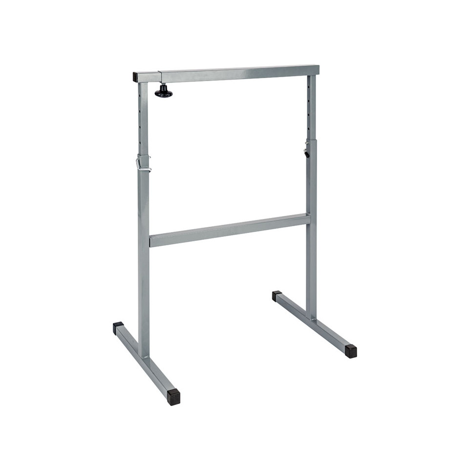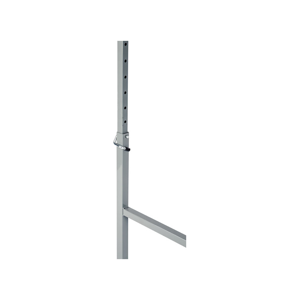 Tréteau réglable en métal, conçu pour offrir une grande flexibilité grâce à ses systèmes de réglage en hauteur et en largeur. Idéal pour les ateliers, chantiers ou travaux domestiques nécessitant un support modulable et robuste.