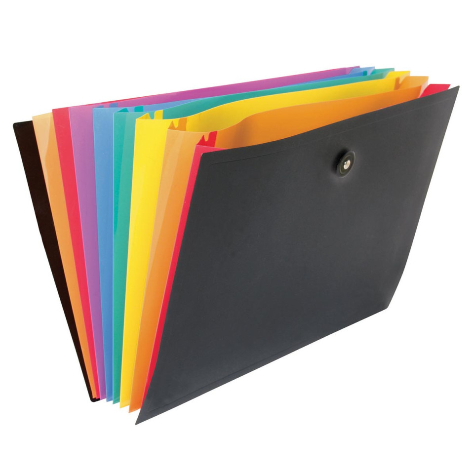 Trieur Viquel Rainbow Class au format paysage, conçu pour organiser efficacement vos documents A4 dans un contexte professionnel ou scolaire. Il propose 8 compartiments distincts et une présentation sobre, noire, rehaussée par des intercalaires colorés pour optimiser le classement.