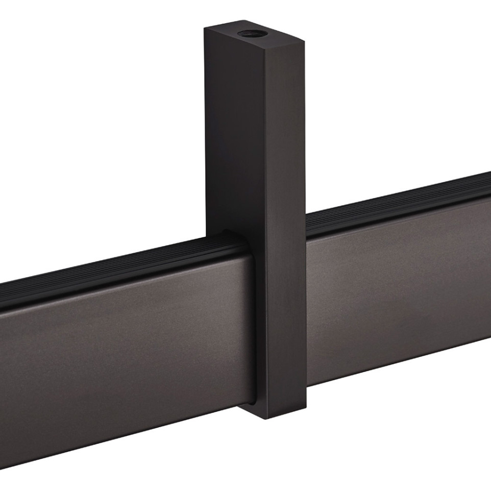 Support intermédiaire à suspendre conçu pour renforcer les barres de penderie rectangulaires en finition titane noir. Idéal pour optimiser l'organisation et la capacité de rangement dans les dressings et armoires.